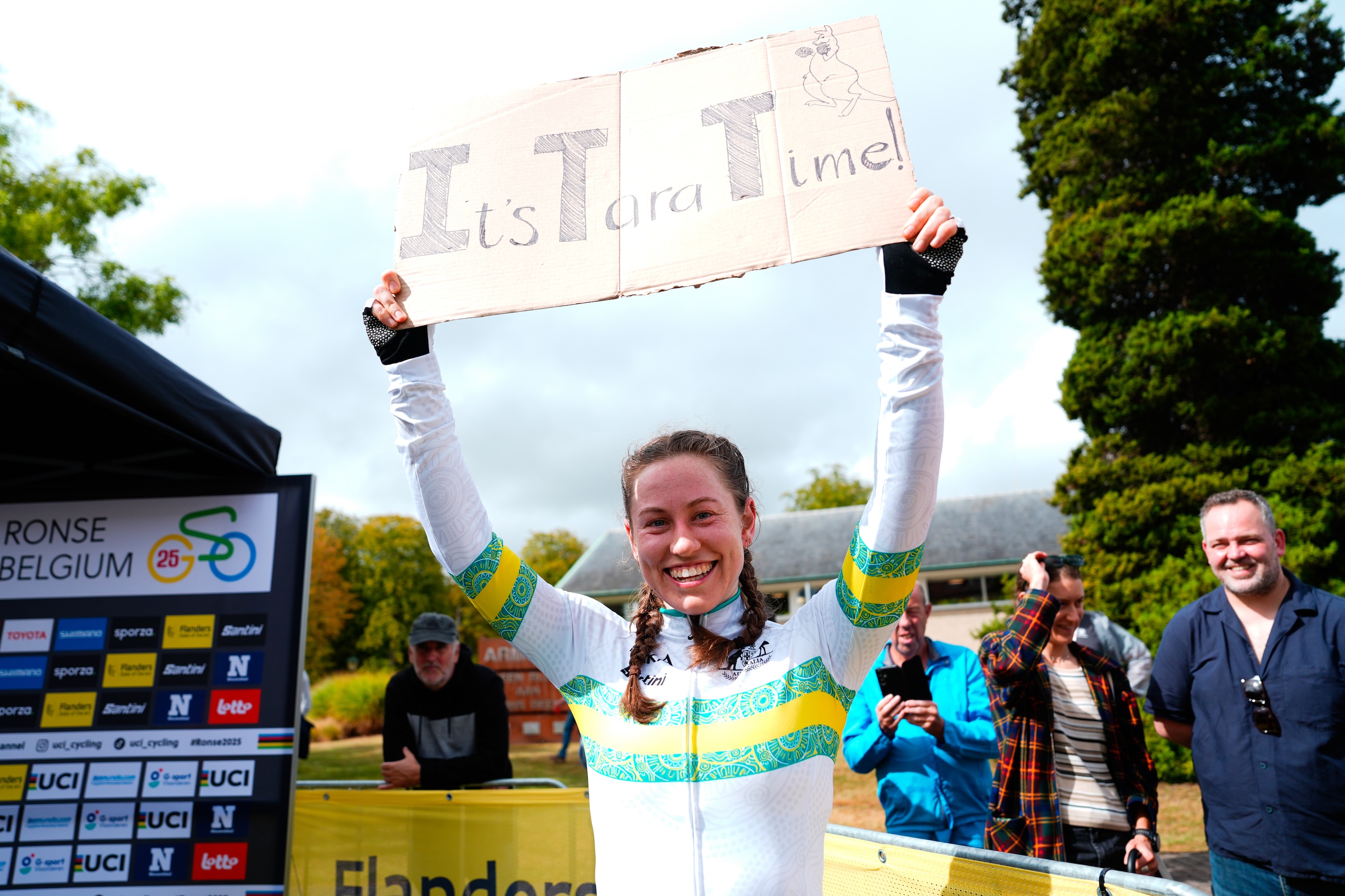 It was a tight battle for the podium positions, but Neyland held onto a 13-second lead to take her maiden rainbow jersey, with fellow Aussie Meg Lemon winning bronze 27 seconds behind.